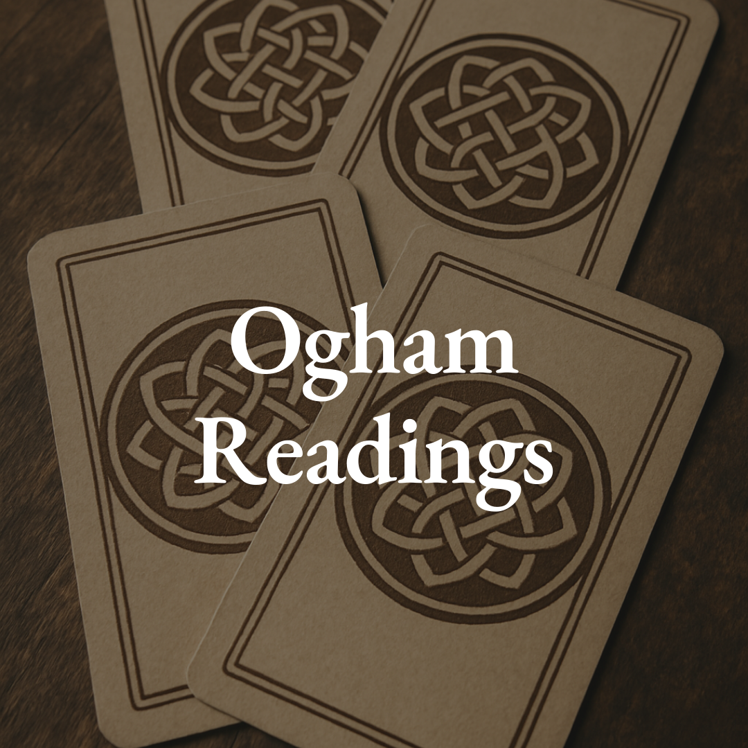 Ogham is the Celtic tree alphabet, a system rooted in earth, spirit, and ancestral wisdom. Each stave carries the voice of a sacred tree, offering clarity, guidance, and connection to the unseen. An Ogham reading is both mystical and grounded, weaving together the forest’s symbols with your personal path.